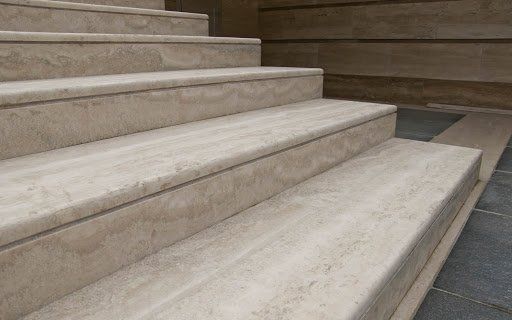 El travertino es una piedra robusta y dócil, utilizable desde suelos hasta revestimientos tanto exteriores como interiores, y también, en algunos casos, para escultura.